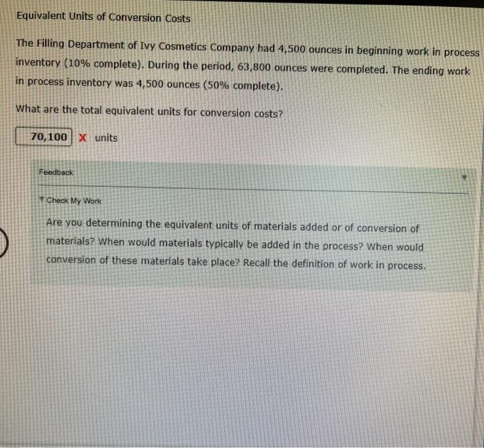 Solved Equivalent Units Of Conversion Costs The Filling Chegg Com